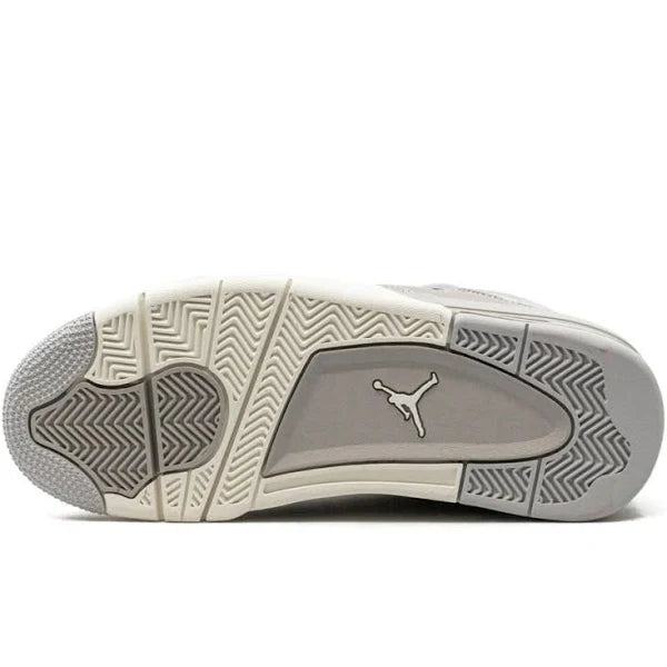 The Jordan 4 Retro Frozen Moments ( WMNS) features a balanced look with light iron ore, sail-neutral grey, black, and metallic silver. The distinctive silhouette, made of suede and leather overlays, is accented with metallic silver wings. This precisely made sneaker represents the Jordan tradition and provides a timeless elegance.